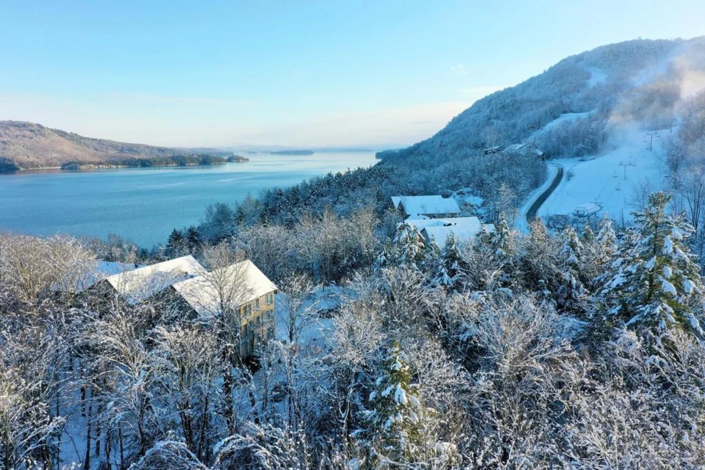 Ski-in/ski-out, 50 trails, cozy glades, and panoramic views of the lake. Mountain golf, in a spectacular setting at the foot of the western slope. Hiking, biking, water sports, and relaxation at the exclusive Lake Club.