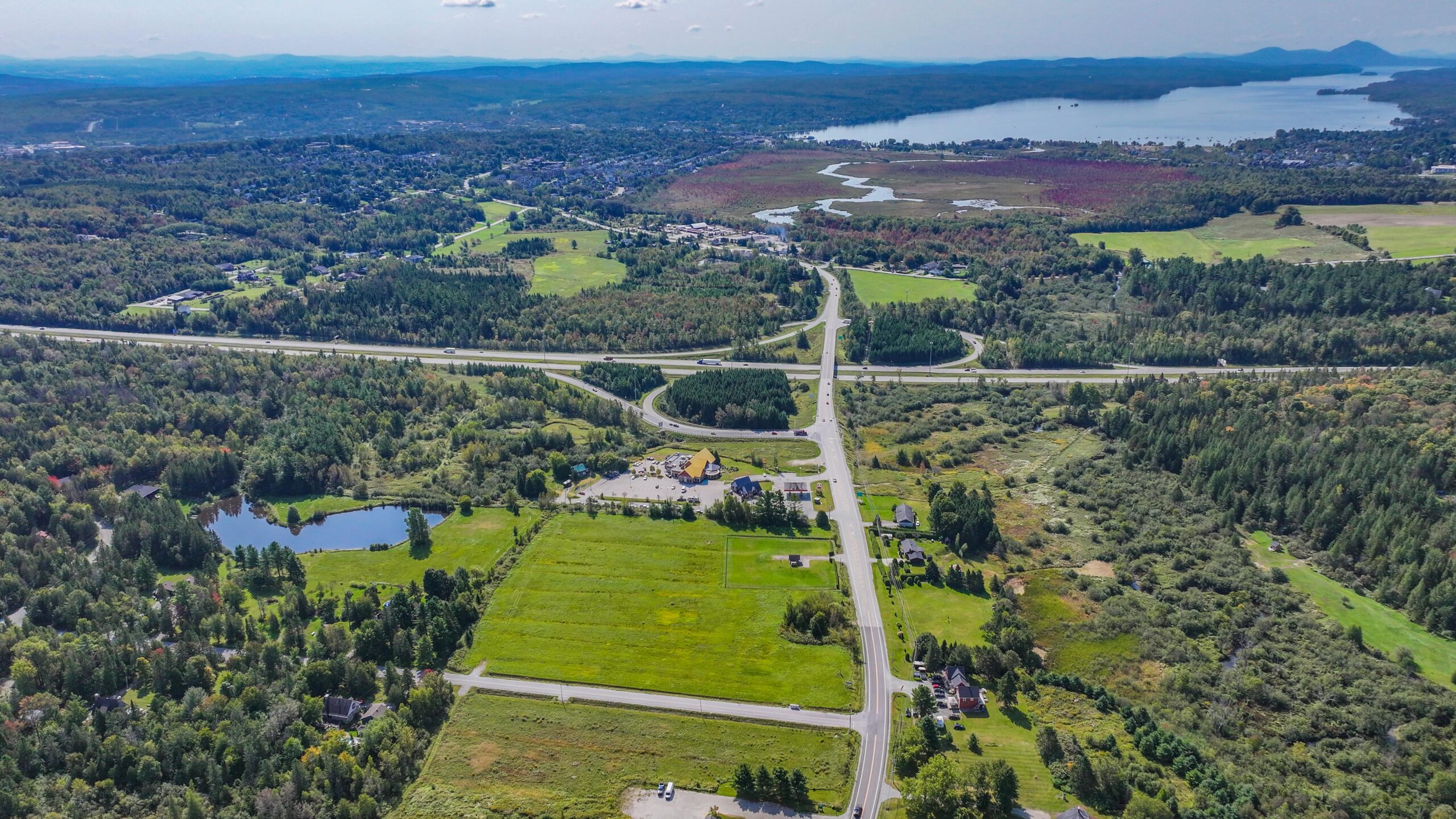 311 607 pi² stratégiquement situés à vendre, à la sortie 118 de l’autoroute 10, entre Magog et Orford — visibilité incomparable avec un achalandage de plus de 40 000 véhicules/jour.