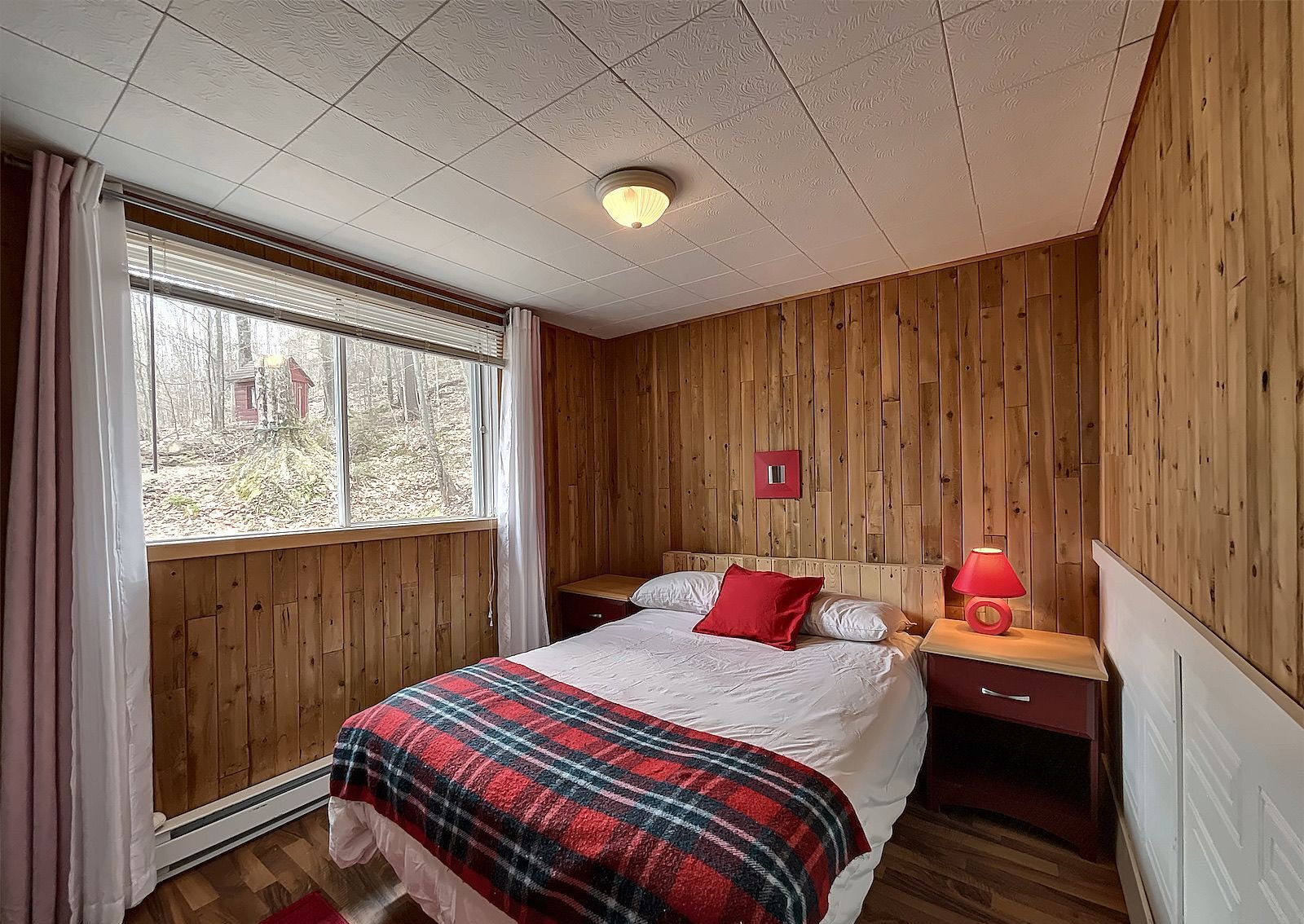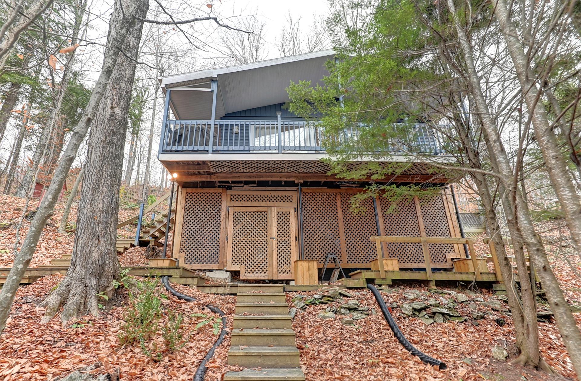 Niché au coeur de la nature, ce magnifique chalet quatre saisons, entièrement meublé, séduit par son plafond cathédrale et son intérieur en bois chaleureux. Idéal pour vos escapades estivales ou hivernales, il offre un accès à quatre plages réservées aux résidents, à seulement cinq minutes de marche. Avec ses deux chambres, son foyer invitant et son confort clé en main, il constitue le refuge parfait pour une petite famille ou un couple. Profitez d'un cadre paisible, à proximité de Howl's Head, Jay Peak, Orford et Bromont. Un véritable havre de paix à découvrir!