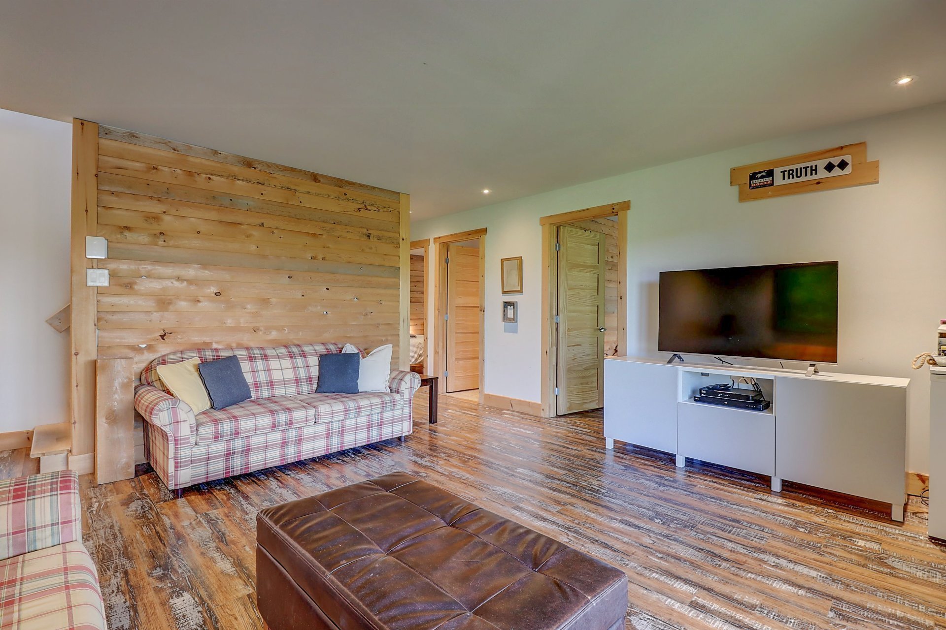 créative , un foyer à bois. Sous-sol: un Salon avec 3