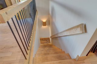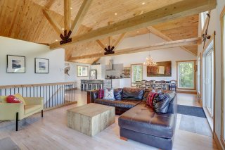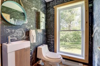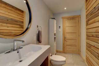 découvrez des grands plafonds de bois, une belle toilette