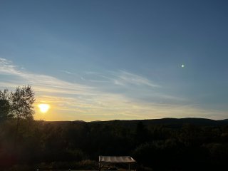 la vue sur les montagnes de l'Estrie. En rentrant vous