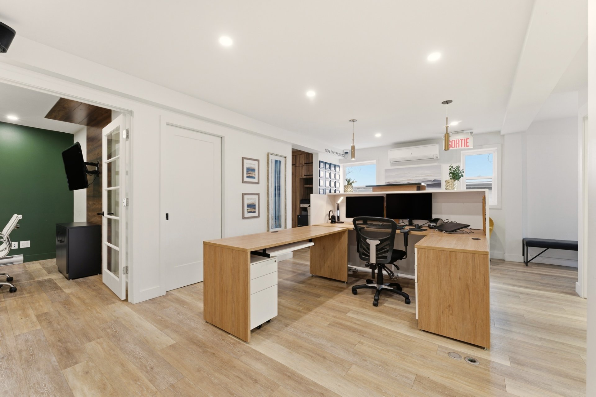* Aire de travail moderne, lumineuse et configurée pour
